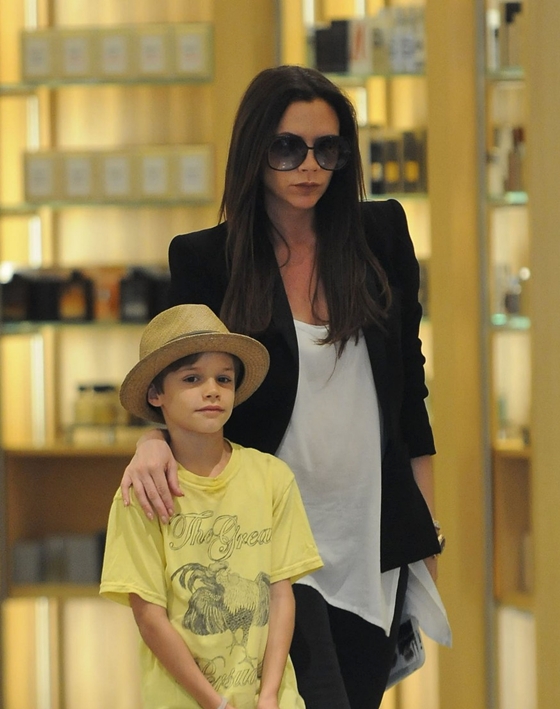 Victoria Beckham két fiával, Romeóval és Cruzzal a Barneys New York áruházban vásárolgatott április 7-én Beverly Hillsben.